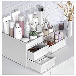 Multifunctional and large-capacity design: The desktop makeup organizer has two drawers and multiple compartments to store your cosmetics.