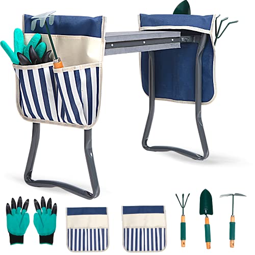 LYKO Upgraded Garden Kneeler and Seat, Foldable Gardening Stool with 2 Bonus Tool Pouches -Comfy EVA Foam Pad Garden…