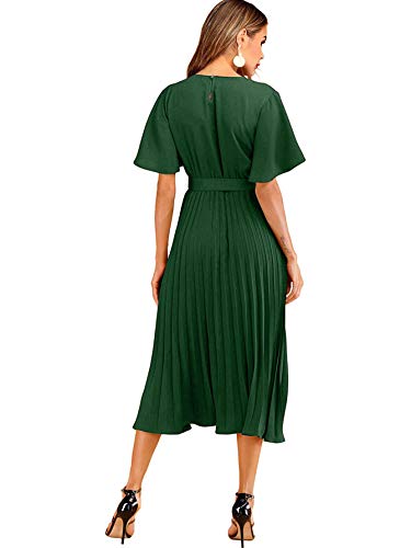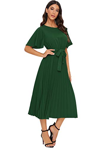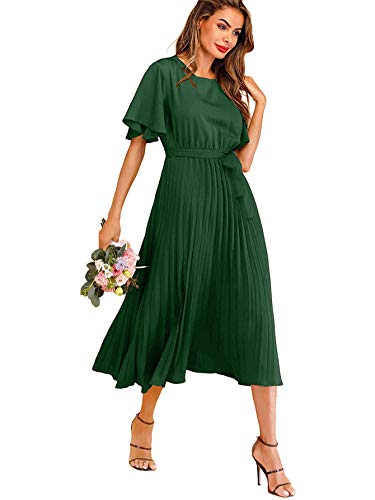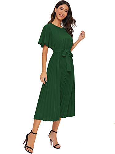 Milumia Women’s Elegant Belted Pleated Flounce Sleeve Long Dress