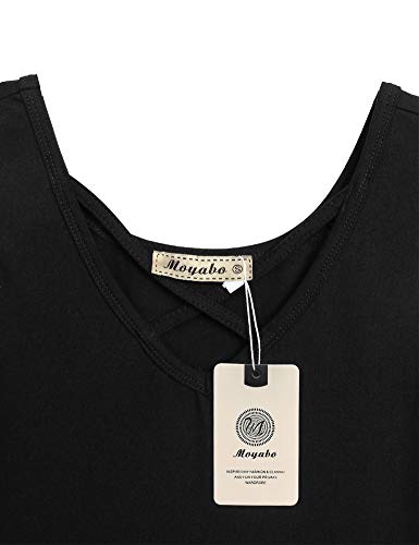 Moyabo Womens Sleeveless V Neck Criss Cross Midi Flared Tank Dress with Pockets
