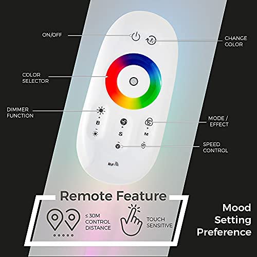 Remote Controlled: Use the touch sensitive remote control to adjust lighting settings from up to 30 meters away. Choose from easy to operate preset functions or customize your mood-setting preferences. No app crashing issues.