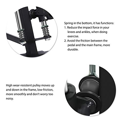 【Durable Construction】This stair climber’s frame is made of frosted steel, which can be protected against corrosion. The large pedals, suction cups, and triangular structure make the climber more stable and durable. The steel spring avoids friction, protect the knees and ankles. Max User Weight is 300lbs.