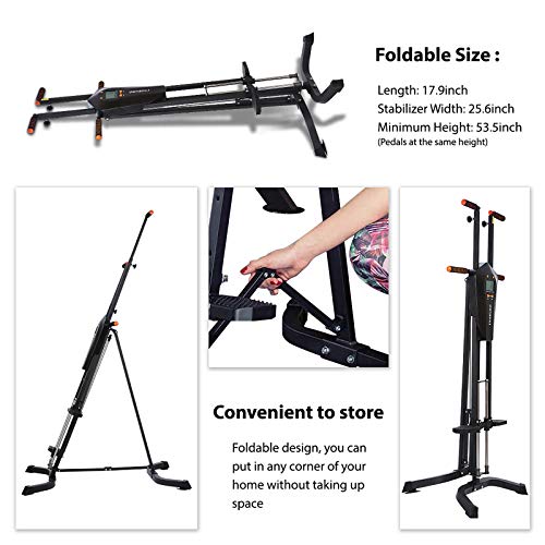 【Easy to Install and Store】Folding design, 90% pre-assembled, ready to use in minutes. The climber can be placed in a corner or closet, which can save 80% space. Folded size:17.9″” L x 25.6″” W x 53.5″” H(Pedals at the same height).