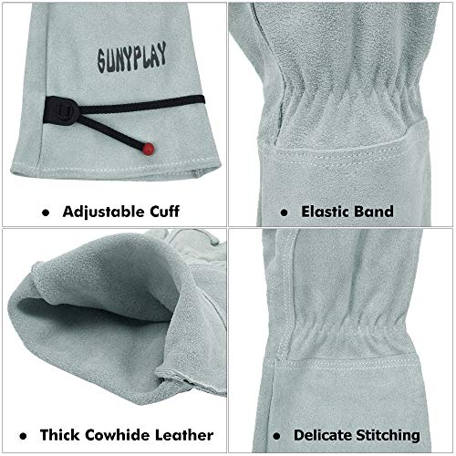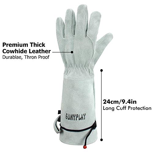 SUNYPLAY Gardening Gloves for Women/Men, Thorn Proof Cowhide Leather Garden Work Gloves