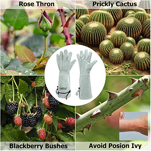 【WIDELY USED】This thorn proof gardening gloves is suitable for pruning roses, blackberries, cactus, holly, berries and other prickly plants. Perfect for all types of gardening works, landscaping, weeding, mowing, branch cleaning, picking, pruning and outdoor activities.