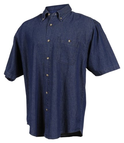 Men’s 7 oz. 100% cotton denim stonewashed shirt. Short sleeves, left chest pocket with button, yoke back and button-down collar, XS-6XLT.