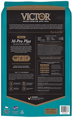 VICTOR Hi-Pro Plus for Dogs is formulated to meet the nutritional levels established by the AAFCO Dog Food Nutrient Profiles for All Life Stages, except for growth of large size dogs (70 lb. or more as an adult).