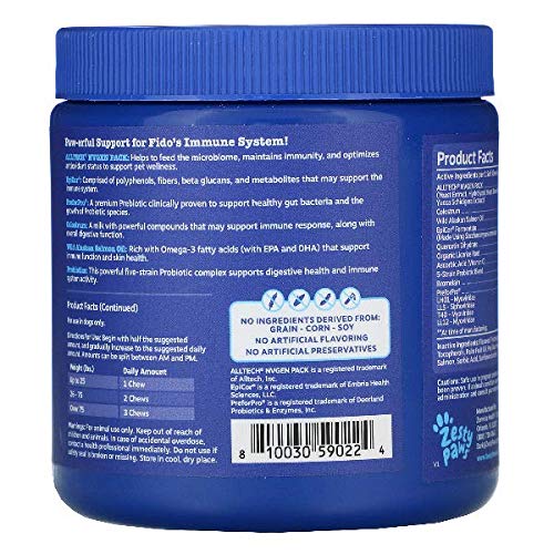 Wild Alaskan Salmon Oil – Each chew contains Salmon Fish Oil to provide Omega 3 fatty acids EPA & DHA that provide skin and immune support for dogs with allergies that cause itchy skin and hot spots.