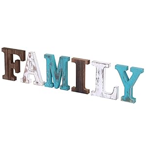 NC Family Wall Decor Rustic Wood Family Sign Farmhouse Freestanding Wooden Letters Clearance Decorative Wooden Block…