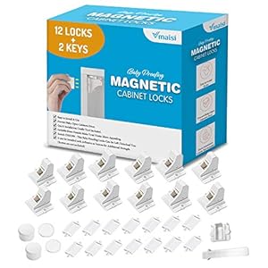 12 LOCKS and 2 KEYS:Vmaisi Baby Proofing Adhesive Magnetic Cabinet Locks, Child Safety for Drawers and Cabinets